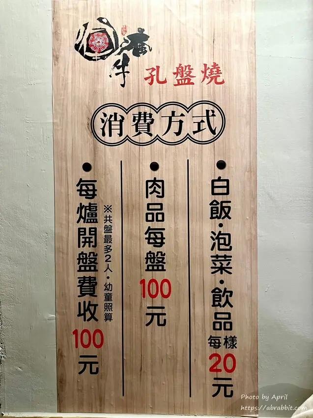 瘋牛孔盤燒的消費方式很簡單,基本開盤費100元(不含肉品),所有牛肉部位一盤都是100元。另外,白飯、泡菜、飲品每樣20元,還能加點生啤酒。