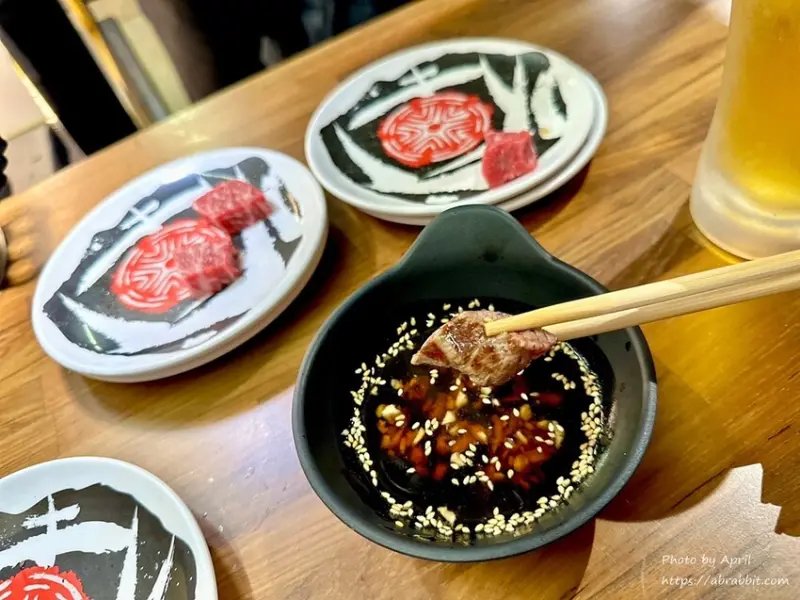 牛肉單吃就已經很美味,搭配店家的醬汁更是相得益彰,讓人一口接一口。