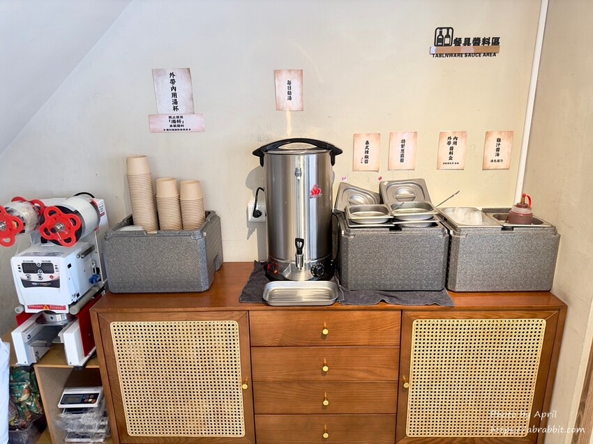 店門口旁邊設有垃圾桶和分類區,用餐後需要自行收拾餐盤、餐具,並將垃圾丟至門口的分類區,環保意識很強,這點非常值得讚賞。