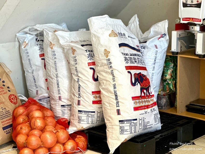 店內還堆放了一袋袋的泰國香米,營造出很有異國風情的氛圍。