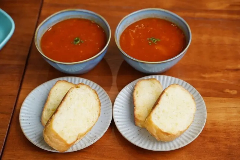 用餐時間為90分鐘,酌收10%服務費。點主餐加價$118元就能升級成套餐,包含例湯、麵包及飲品,當天喝到的是濃郁的「番茄湯」,帶有西洋芹、義式香料香氣,喝得出真材實料,麵包口感酥脆,帶有奶香滋味,搭配湯品一起享用,美味度更升級!