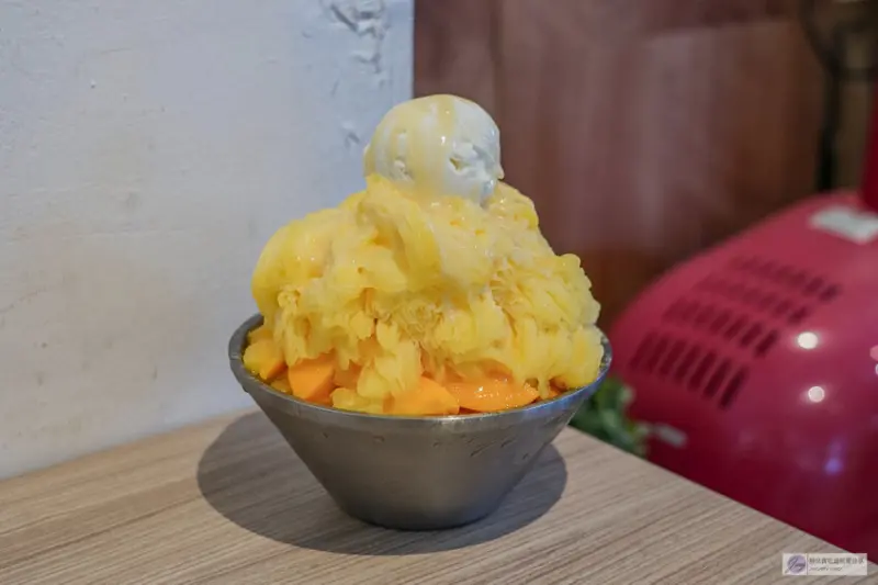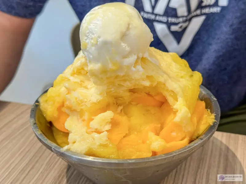 夏天當然不能錯過芒果口味的雪花冰啦!這款經典芒果雪花冰,口感清爽細緻,雖然芒果的味道稍微淡一些,但不甜膩,還附有鮮甜的芒果果肉,上面再加上一顆香草冰淇淋,這樣一份只要70元,真的超級划算。