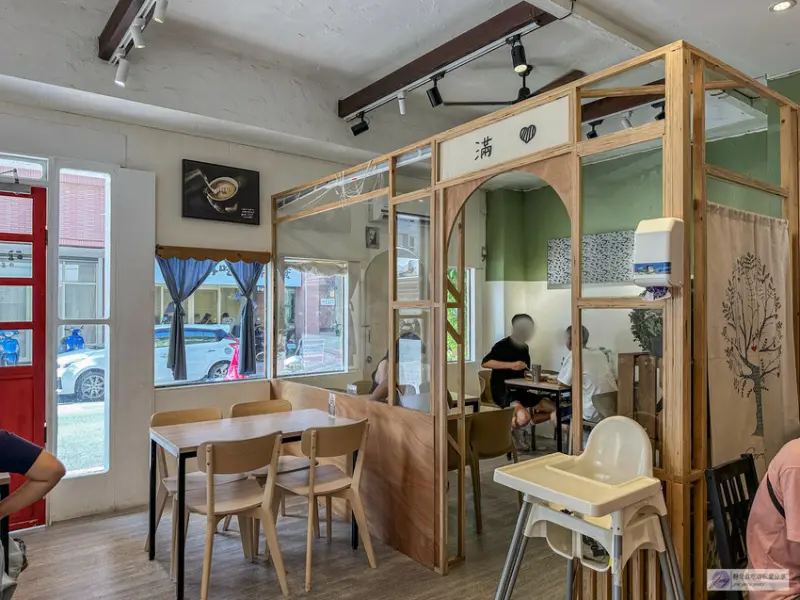 店內空間主要以白色系為主,營造出乾淨清新的氛圍,讓人進入後感到放鬆。夏天的冷氣非常涼爽,座位也充足,適合親子家庭前來用餐,店內還特別提供了兒童座椅,對於有小孩的家庭來說非常貼心。