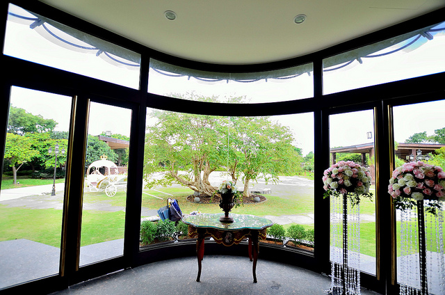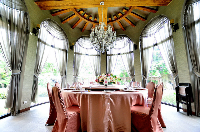 蘿紗布幔,全景玻璃落窗,彷彿置身皇室庭院的用餐空間