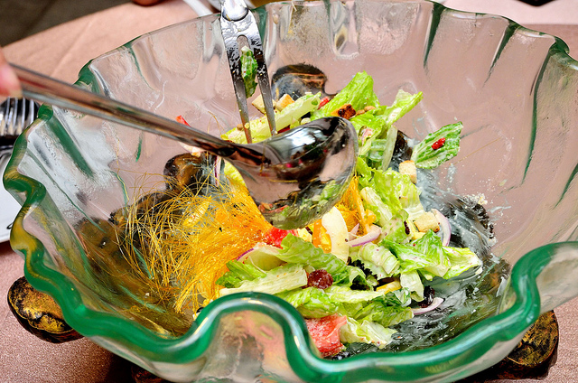 平凡的凱薩沙拉,因為這金黃糖絲的關係看起來貴氣逼人!