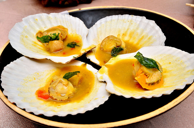 也是當天港口直送的新鮮帆立貝,烹調上佐以咖哩醬汁