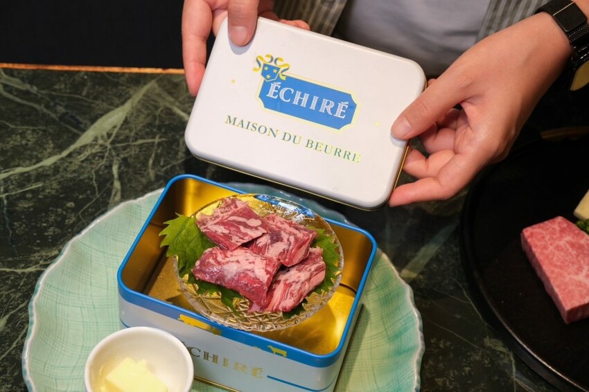 ▼上演浮誇火焰秀的肝連艾許燒奶油,將和牛橫膈膜塗上法國ECHIRE艾許奶油直火燒烤,吃起來帶有濃厚肉味與奶油飽滿香濃氣息~