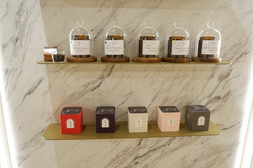 吧台對面的香氛蠟燭區
