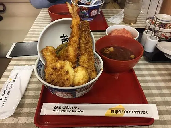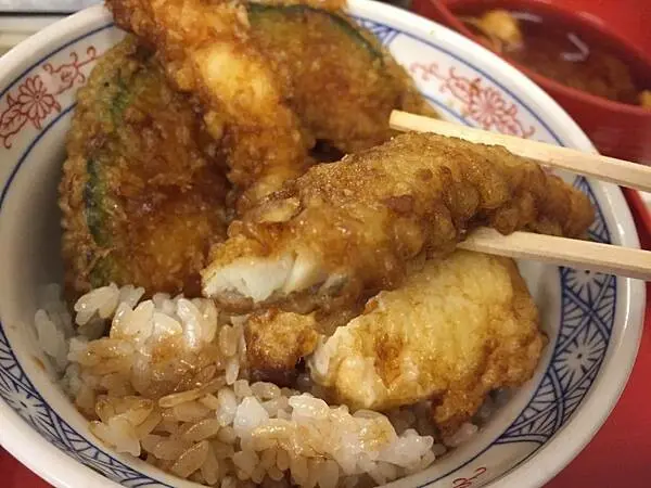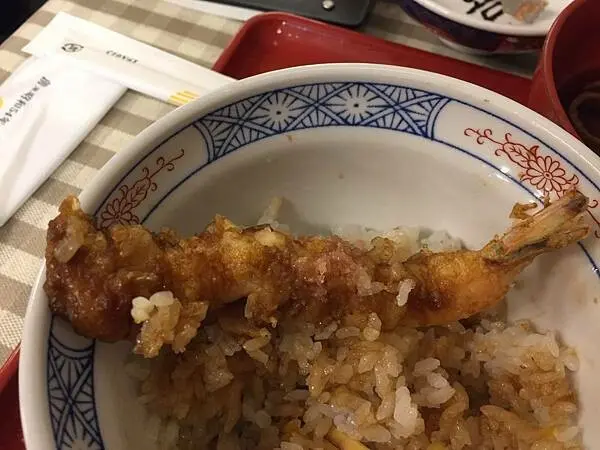 "天麩羅 えびのや"的餐點以 "丼物"為主,為蓋澆飯類之日本料理的通稱,通常是以較大尺寸的碗在米飯上盛裝包括魚肉、肉類、蔬菜或者其他慢煮料理而成,在日本算是相當普及的大眾料理。