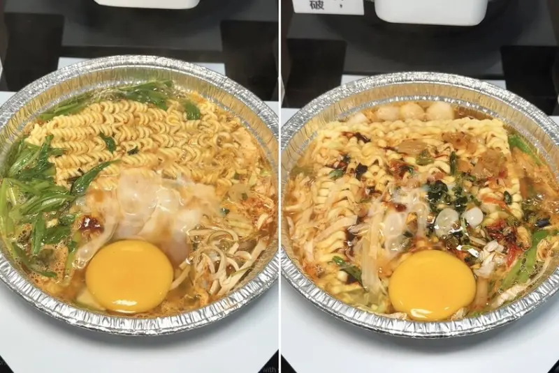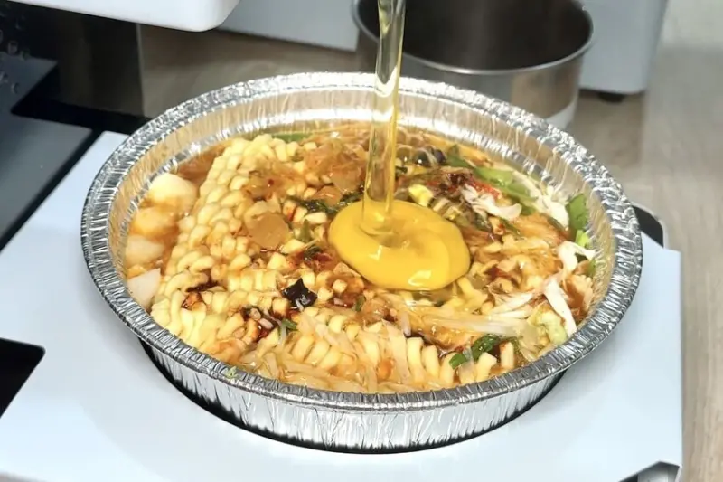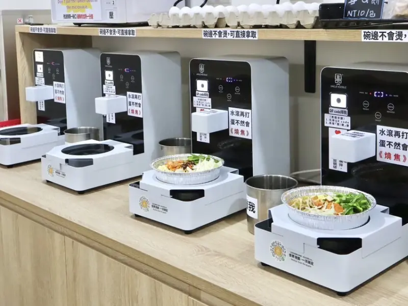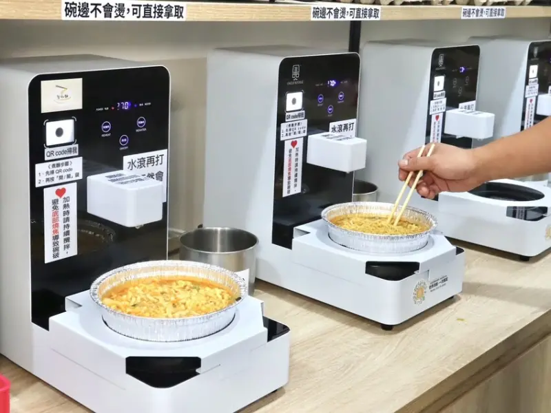 ▼先把泡麵放到自動加熱機台上
