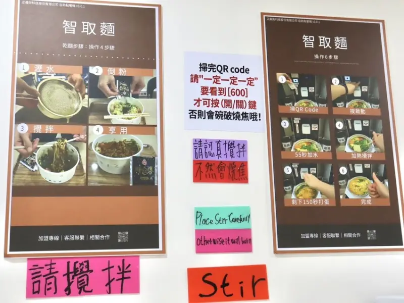 ▼接著就是最開心的煮麵啦~牆上有貼操作注意事項還附圖片XD 簡單明瞭操作方便~就算沒有店員也很OK!