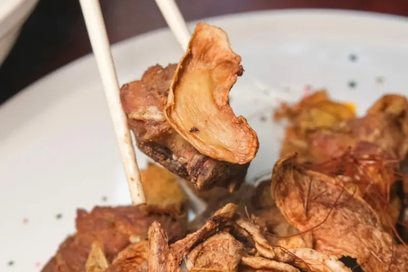 ▼店內招牌必點的薑爆雞,一吃下去就讓人大驚艷,嚴選半隻溫體土雞切塊酥炸,伴隨胡椒、炸薑片拌炒入味,連薑片都炸得相當酥香脆,口感近乎餅乾超級強,雞肉吃起來則是香酥多汁,隨著咀嚼散發出肉的甜香~
