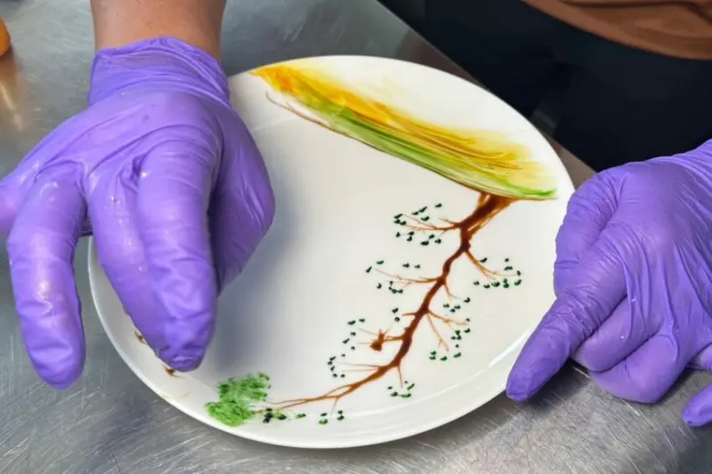 ▼【御品美食饗食堂】提供內用、自取、外送服務,還有外燴辦桌工商喜慶(神明宴/平安宴等),最低只要1桌就能夠做,半開放式廚房能看到主廚熱炒的過程,用料新鮮採國產豬、溫體雞等嚴選食材,店內雞高湯湯頭則以雞骨、魚骨精心熬煮,連畫盤都是老闆一筆一畫出來的!
