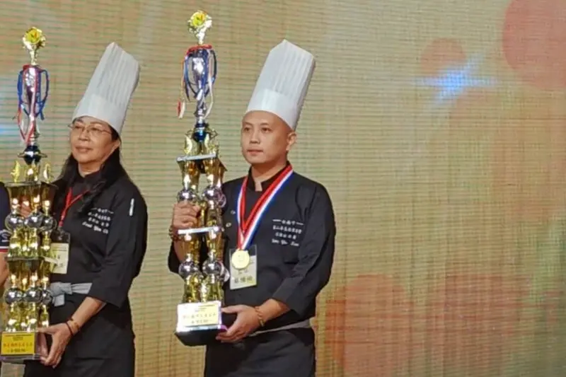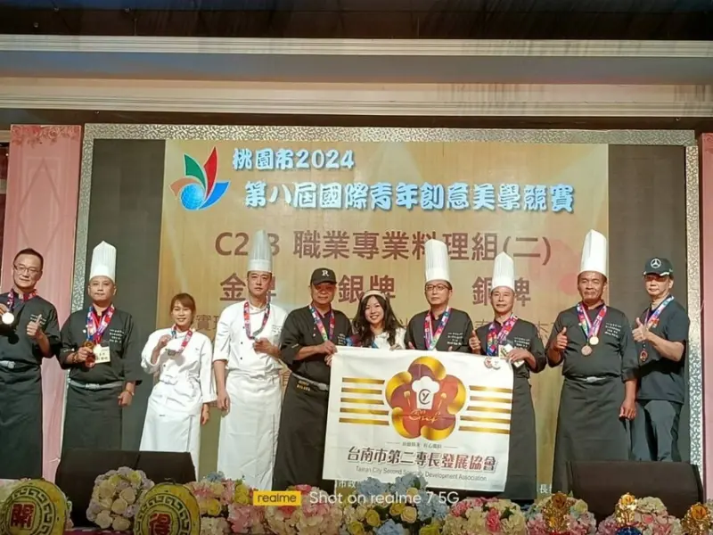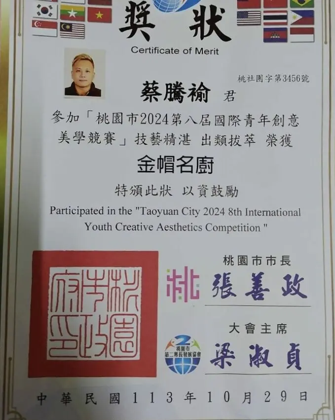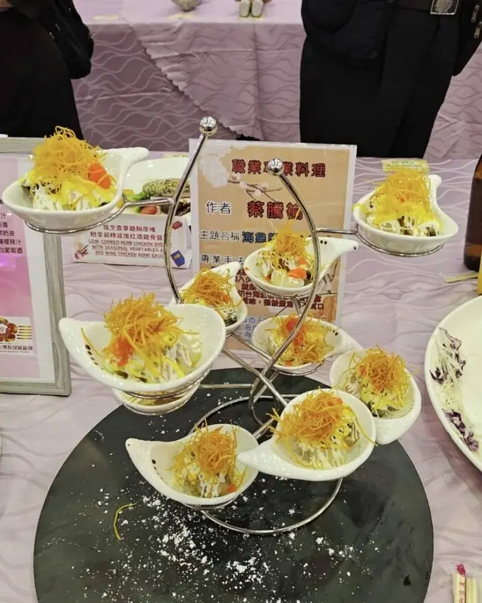 ▼【御品美食饗食堂】近期更獲得餐飲大賽數個獎項,獲獎的這道海皇賜寶金絲球,以新鮮檸檬和芒果為基底,搭配日本北海道干具柱、日本北海道鮑魚、日本北海道扇貝,頂頭放上金黃酥脆的手工細切台灣紅蕃薯,最後以鮭魚卵為點綴,自然甜味,整體豐富而不膩口~