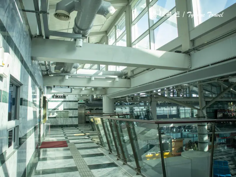 往走廊另一側行進則是辦公區,從這裡能完整拍下機場內部景觀,窗外可以俯瞰出境區及登機門全景。期待未來花蓮航空站引進更多國際航班,促進當地觀光發展!