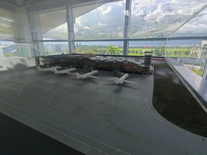 其中一個亮點是華信航空櫃台旁的 花蓮航空站立體模型,設計細緻,從中可以清楚了解機場的塔台位置。