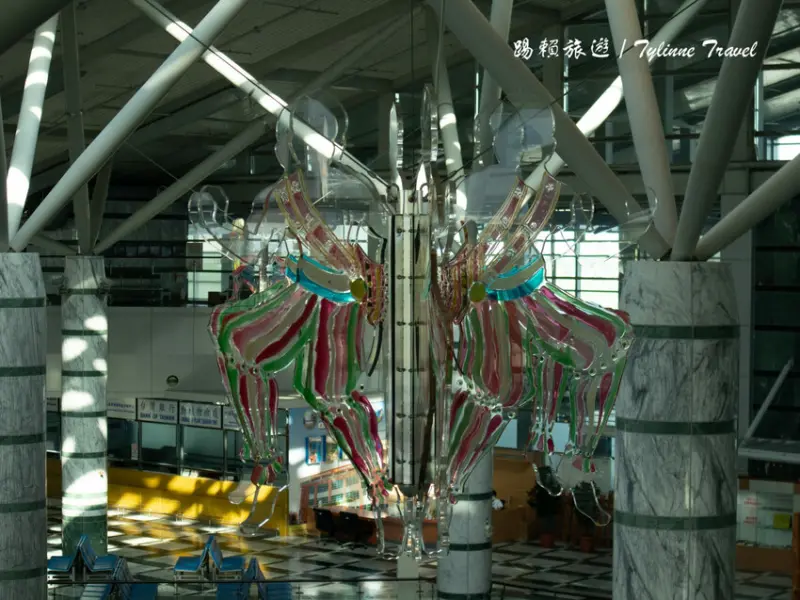 三樓柱頂的裝置藝術則展現了 阿美族的文化特色,結合當地人文風情,讓旅客在機場內就能感受到花蓮的文化氛圍。