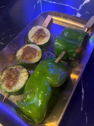 能夠不烤到焦黑的青椒和櫛瓜,顯示串香殿師父的烤功了得,吃得蔬菜的出水的青脆!