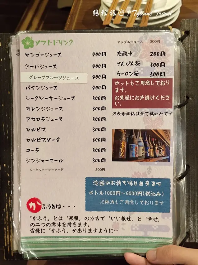 我們點了三款飲料,分別是「沖繩香檸汁」、「芒果汁」和「薑汁汽水」,每一種都各有特色!