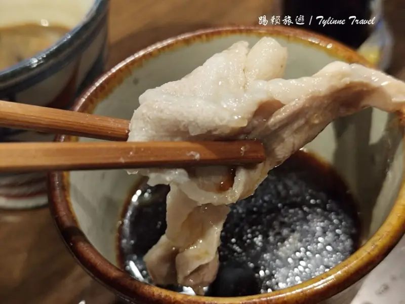 。阿古豬肉片本身肉質彈牙,入口充滿豐富油脂香氣,直接品嚐便能感受到肉質的鮮甜。
