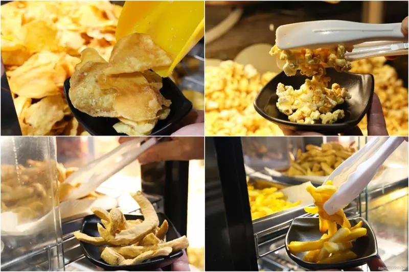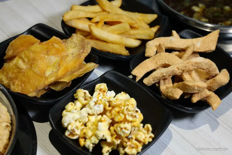 「九鼎鍋」的自助吧一直都讓人很期待,不只有一般火鍋店能提供的飲料、白飯、冰淇淋,「九鼎鍋」還給你點心無限吃。「九鼎鍋大同店」共提供四款點心,薯條、甜不辣、爆米花、薯片,想吃多少都沒問題,以不浪費食材為主。