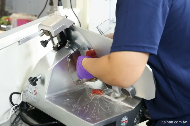 板腱稍微有一些油脂,切的薄度剛好,吃起來就很嫩口,這片我自己就很喜歡。