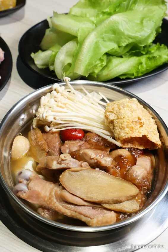 花雕雞鍋也是獨家秘製的湯頭,沒有厚重的酒味,淡淡的花雕酒香迷人,湯頭不厚重跟油膩,喝起來會回甘。煮了高麗菜跟雞肉,越煮越清甜。 ![]()