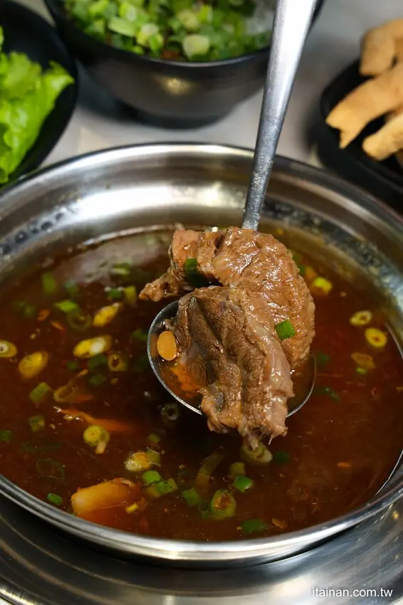 裡面撈一撈至少有七八塊的牛條肉,這鍋紅燒牛腩鍋湯頭正是我喜歡的味道,湯頭是以蔬果與牛骨熬煮,喝得出自然的風味,牛腩的份量也滿多的,CP值很高,附上一盤菜盤裡面少用加工火鍋料,也符合我的需求。