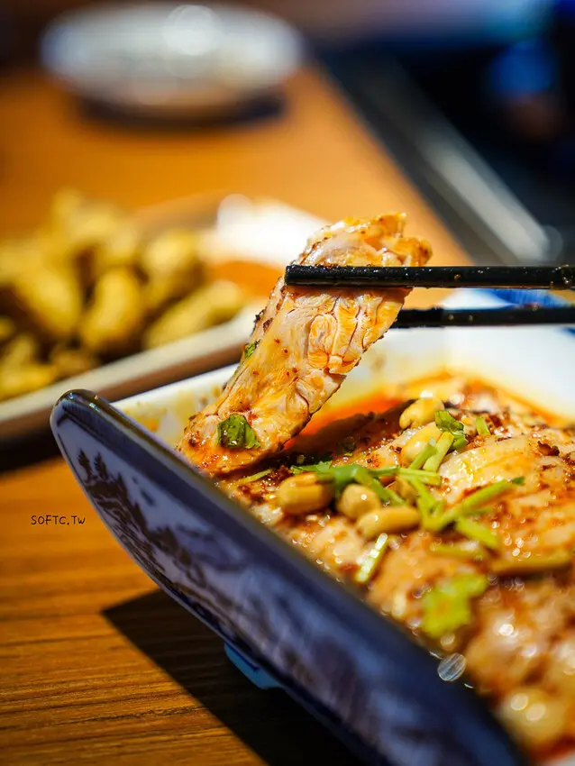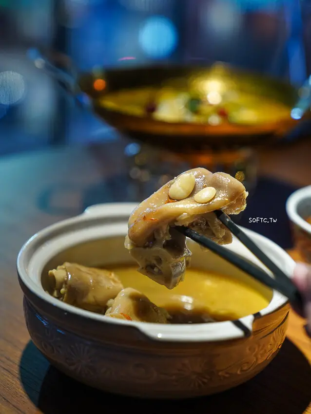 這道經典川菜,乳白色豬腳看起來令人垂涎三尺,豬腳超級細嫩一咬就骨肉分離不黏口,皮彈牙有Q度,搭配脆脆芸豆,是整晚最驚艷的一道菜,湯頭喝來滿滿膠質超精華濃順。