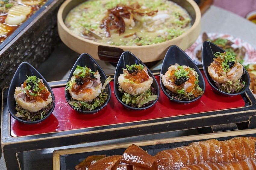 將魚翅、蟹腿和干貝慢慢熬製而成,讓你品嚐到奢華的同時,還有酥脆的鴨皮增添層次!!!