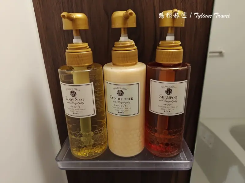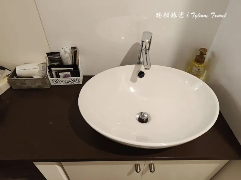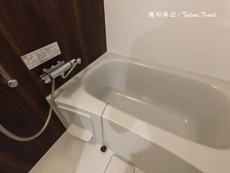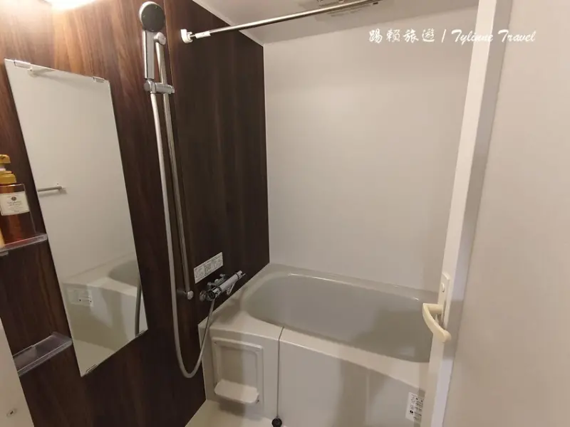 淋浴區內有一個小型浴缸,雖然空間有限,如果想要泡澡可能會感覺有點擁擠,但還是能夠滿足基本需求。提供的沐浴用品品牌質感不錯,使用後肌膚感覺滑順且不會過於乾燥。