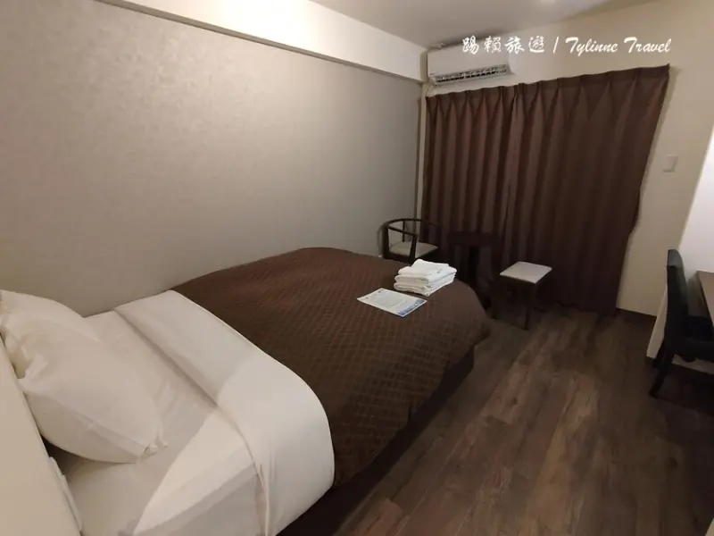 房間內的設施也不馬虎,床鋪有雙人床,雖然一邊貼著牆壁,但睡起來還是很舒服