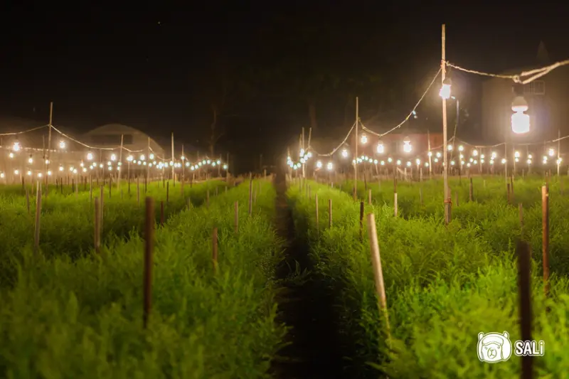 最後一站來到田尾私房夜景——夢幻電照田。為調節植物成長期程,農民會在晚上點亮燈光,延長日照時間。這些「電照田」在入夜的田尾鄉間小路上,點亮黑暗,宛如星光熠熠,讓入夜的田尾多份浪漫與光彩,營造出獨有的浪漫氛圍。