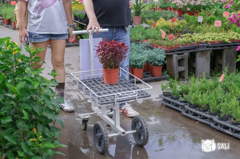 現場精心佈置裝置藝術,怎拍怎夢幻置身,隨手輕鬆拍出時尚大片,現場還備有小推車,方便遊客將挑選植物品項輕鬆推著走