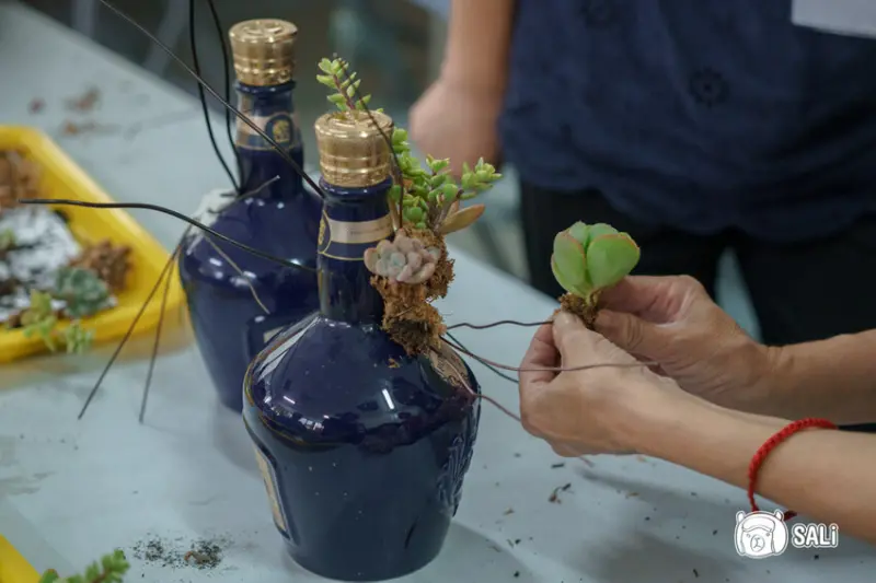 田尾公路花園協會教室3D多肉酒瓶DIY