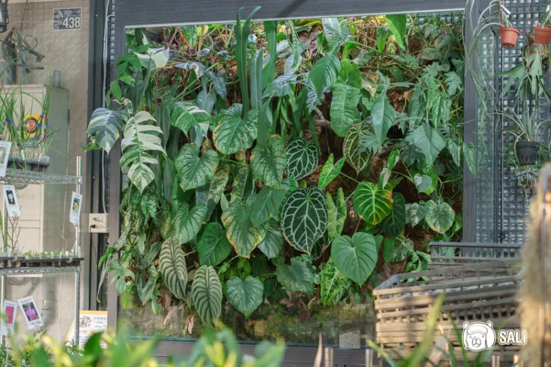 這面綠意盎然的百萬生態牆曾榮獲比賽冠軍,牆上每片葉子都有獨特魅力,其中最珍貴的聖靈蔓綠絨,每片葉子價值高達一萬元,不過別擔心,美琪蘭園內也有大量繁殖小苗,價格相對親民,讓你輕鬆擁有。
