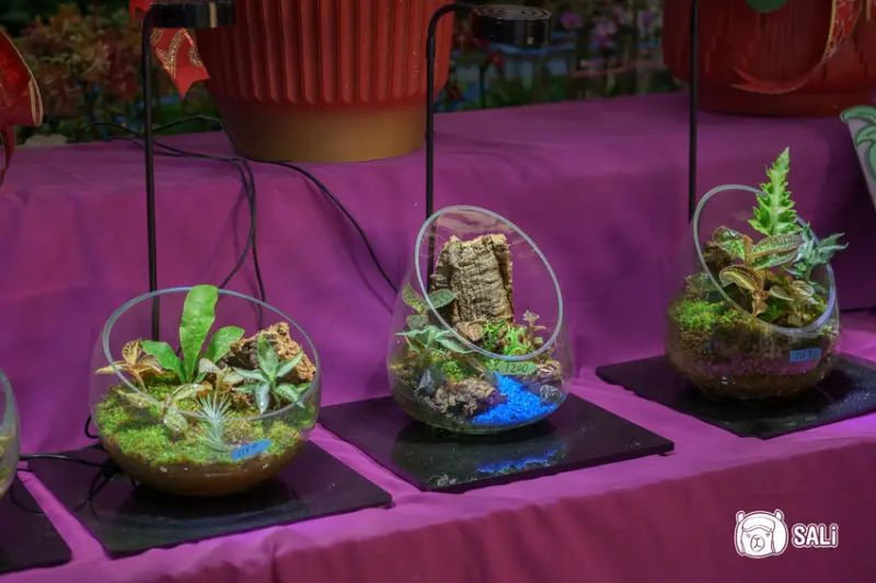 集合各種熱帶雨林植物的生態缸,包括寶石蘭、觀音蓮、蔓綠絨等,尤其是燈光照射在寶石蘭上時,葉脈會隨著光影閃爍,散發出迷人光澤,讓人感到內心平靜,擺放家中裝飾,或作為禮物送人,都是極佳選擇。