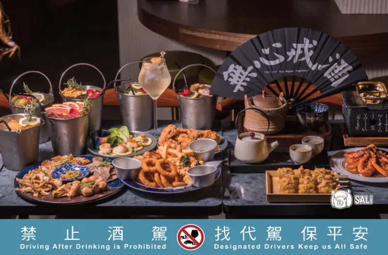 份量超級澎湃的派對BUCKET,內含三款餐點、八選六桶汲飲雞尾酒,每桶約為三杯調酒容量,絕對能喝得非常過癮,整份套餐約為6-8人一起享受,很適合三五好友相聚就來這一組
