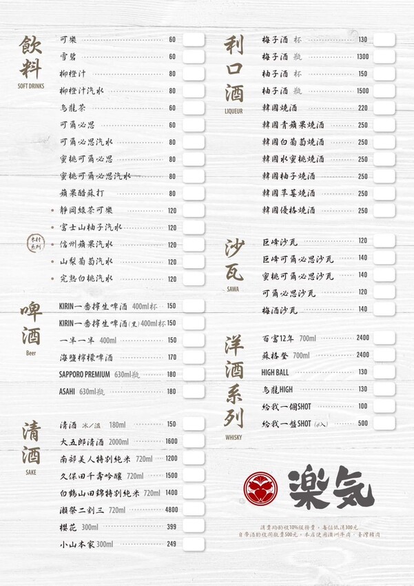 樂氣串燒居酒屋的菜單很豐富,有點多到不可思議!