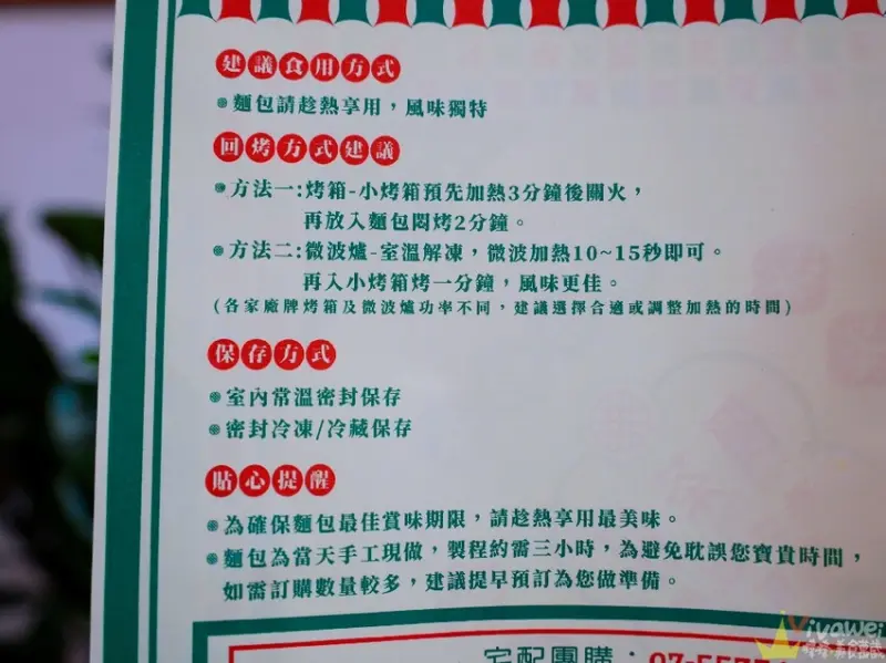 ▲如果是外帶回家,可以參考店家提供的保存方式和回烤方式!我之前也會一次多買幾顆菠蘿油放冰箱,想吃的時候回烤加熱就能像是剛出爐的口感,也是很方便👍