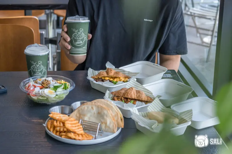 想一探今日甜點麵包有哪些,可前往點餐區都有展示,點心、輕食都會用先前很夯的漢堡餐盒盛裝,放在桌上拍起來超可愛