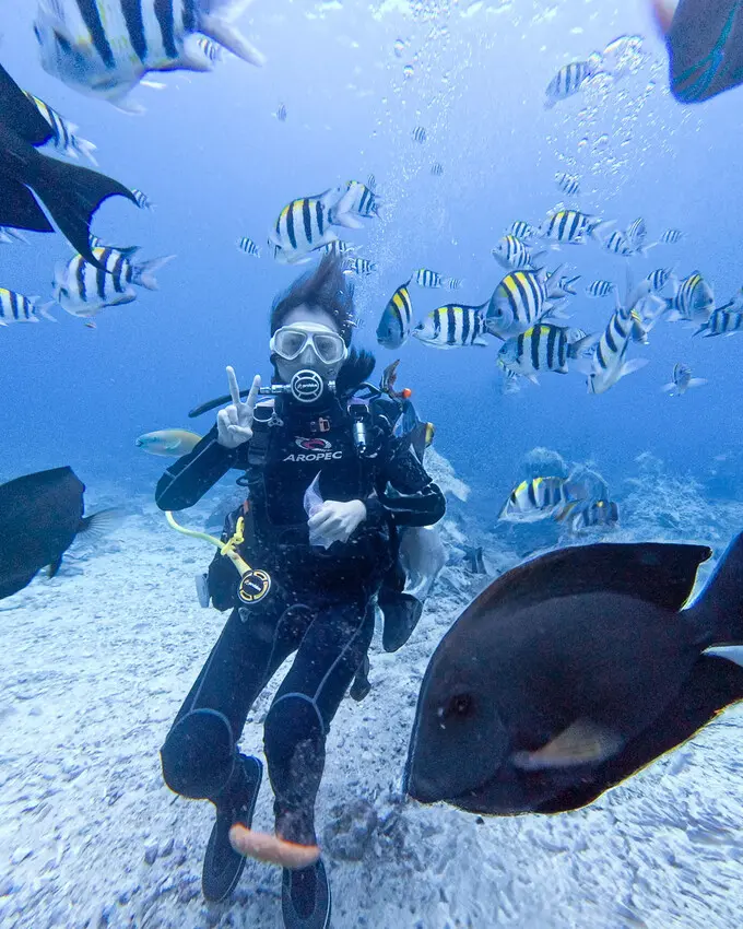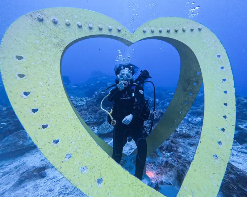 我覺得綠島的潛水滿有趣的,海底下有不少打卡點,教練還會帶麵包讓我們餵魚!