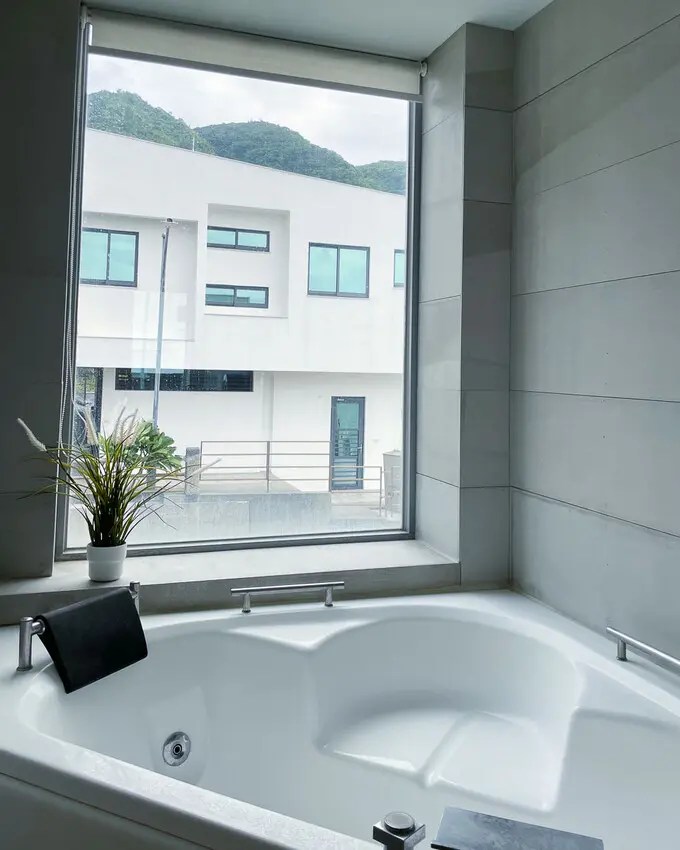 藏水的雙人房有綠島最大的雙人按摩浴缸!超讚的~潛水完立刻回到住宿泡澡!浴室還很貼心的附上掛衣繩,衣服、泳裝洗完都可以掛在浴室晾乾~