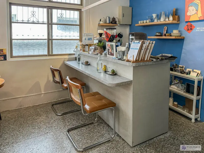 SabiSabi Coffee&Sweets 的裝潢保留了老宅原有的格局與空間,整體沒有過度裝飾,卻充滿濃厚的復古感。一樓是半開放式的吧台,搭配四人桌與吧檯桌,空間雖不大,但卻因為保留了原本的洗石子地板、窗框與木窗,營造出清新舒適的氣息。木製桌椅與復古風格的設計,讓人忍不住想在這裡多待一會兒。