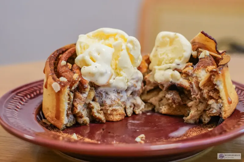 SabiSabi 的肉桂捲內用會附上一球香草冰淇淋,經過回烤後的肉桂捲外皮微微酥脆,內部鬆軟且香氣濃郁。與一般肉桂捲相比,這裡的肉桂味不會過於濃重,恰到好處的甜度與香草冰淇淋搭配起來,口感更加豐富。如果你是重度肉桂控,可能會覺得味道稍嫌溫和,但對於不太習慣重口味肉桂的人來說,這是非常適中的選擇。
