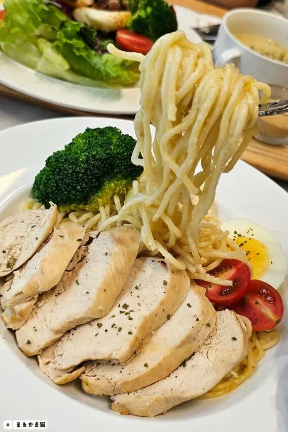 炙燒嫩雞胸很香沒有過多的調味,推推義大利麵!