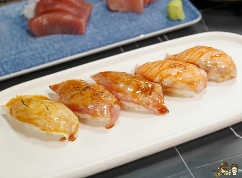 一口一個剛剛好,整個豐富香氣保有炙燒鮭魚油脂風味