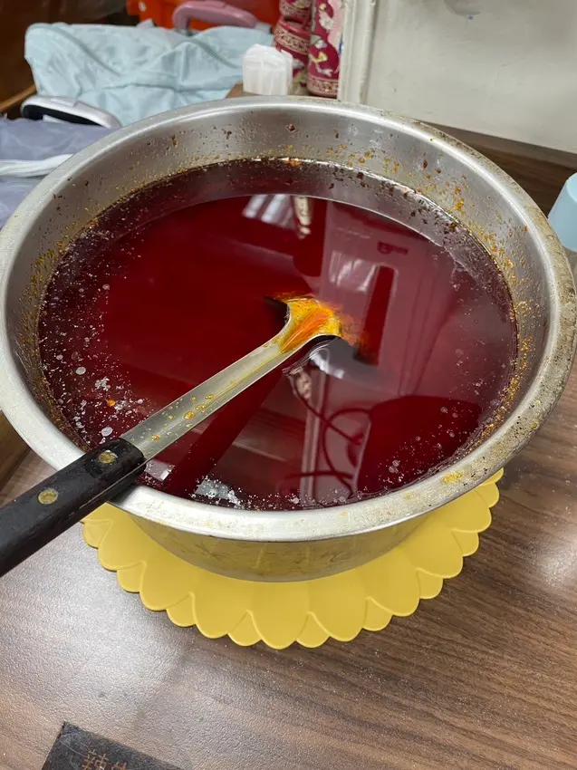牛肉麵的核心- #辣牛油,吃牛肉麵一定要加它,老山東的辣牛油很特別是液體的,有些店家是固體的,我個人偏好液體的辣牛油。
