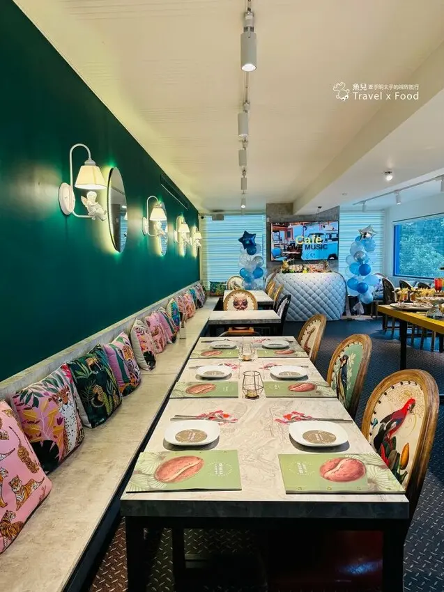 前幾次白天來用餐,2-3樓尚未開放,這回選在11.11開幕,讓我有機會大飽眼福。室內約可容納20-30人,用色鮮明活潑,不僅有質感,還十足的網美風,許多原本待在一樓用餐的貴客皆迫不及待地衝上樓,用幾分鐘的時間看著拍著,完全不想錯過眼前的空間。