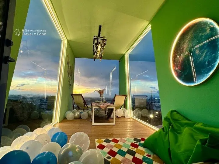 透過玻璃窗欣賞黃昏及夜晚,各擁各的美,即使雨天也別有一番風景。